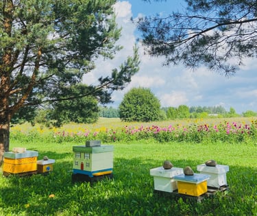 • Nuotraukoje matote šiais metais mūsų bitininkystės ūkį praplėtusias naujas bičių šeimas, kurių motinėlės atkeliavo iš Danijos!